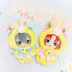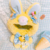 16cmぬいちゃん用の着ぐるみです。 9/10 23:10 よりBASEにて先着頒布予定です。 https://mogulovely.handcrafted.jp/items/65547303 ☆.。.:*・゜☆.。.:*・゜☆.。.:*・゜☆.。.:*・゜ 🍋🐇レモンうさぎちゃん🐇🍋 夏もたくさんたのしむ ビビッドカラーのうさぎちゃん♡ おみみの飾りはたくさん種類が あるので、お似合いに出会えます♡ ☆.。.:*・゜☆.。.:*・゜☆.。.:*・゜☆.。.:*・゜ つくり 裏地は片面です。 顔まわりは接着芯で補強あり、 多少伸びるので着せ替えしやすいです ♡たくさん引っ張ると毛が抜ける可能性があるので、 優しくお取り扱いをお願いいたします。 ♡素人のハンドメイド作品です。 縫いの甘さや歪みなど予めご了承頂ける方のみご利用ください 。 ♡1着あたりの価格です。 ♡お帽子をつけているぬいちゃんはきつくなるので、 帽子をつけたままで着用しようとすると破損する恐れがあります。 ♡グルーガンを使用している部分があるため、120度以上の高温での放置は避けてください。 最後までお目通しありがとうございます。 ご縁をいただけますと幸いです。