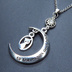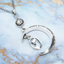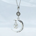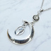 アンティークシルバー 猫と三日月とラインストーンのネックレス SV925可 長さ変更可
