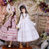 SD少女サイズのドレス4点セットです。 【セット内容】 ・オフホワイト 長袖ワンピース ×1 ・ラズベリー 半袖ワンピース ×1 ・ボンネット ×1 ・アンダースカート ×1 (撮影に使用したドール、小物等はセットに含まれません。) SD少女ボディを元に製作しています。 他のドールでは着用の確認をしておりませんのでご注意ください。 【セット詳細】 ・オフホワイト 長袖ワンピース 綿ローン(オフホワイト)、リバーレース(オフホワイト)を使用しています。 背中のスナップボタンにて着脱させてください。 重ね着する際に身頃がすっきりする様に裏地は付いていません。 スカートにオリジナルのタグプレートを付けています。 ・ラズベリー 半袖ワンピース 綿ローン(ダークピンク)、綿プリント生地、リバーレース(オフホワイト)を使用しています。 背中のスナップボタンで着脱させてください。 身頃のみ裏地付き。 ウエストのリボンにタグプレートを付けています。 ・ボンネット 綿プリント生地、綿ローン(ダークピンク)、リバーレース(オフホワイト)、チュール生地を使用しています。 レースリボンは首の前、うしろお好きな位置で結んでください。 片側のリボンにタグプレートを付けています。 ・アンダースカート(ダークピンク) 綿ローン(ダークピンク)生地を使用しています。 半袖ワンピース単品で着用する場合は、ワンピースの裾から見える長さになっています。 水通しできるものは一度水通ししてあります。 生地の端処理はロックミシンで、一部ピケを使用しています。 【注意事項】 ※着脱の際は生地を引っ張らずにスナップボタンを引っ張るようにお願いします。 薄手の綿プリント生地、綿ローン、リバーレースを使用しています。 強く引っ張りますと生地が傷みますのでご注意ください。 ※お客様理由でのキャンセル、返品はお受けできませんのでご了承ください。 商品に初期不良がありましたらご相談ください。