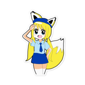 ステッカー - 100 x 100 (mm)婦警さんのコスプレをしているオリジナルキャラクター「かりん」のステッカーです。
