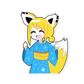 ステッカー - 100 x 100 (mm)水色の浴衣を着ているオリジナルキャラクター「かりん」のステッカーです。