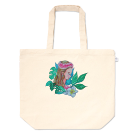 トートバッグ - L - プリント面積中Miジンコさんが描く「トロピカルプランツとフラガール」のイラストグッズです。