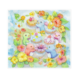 ステッカー - 160 x 160 (mm)ひとり一個ずつだよ~! ハイビスカスの花に囲まれて、いただきま~す! * お手持ちの雑貨に貼ったり飾ったり、書籍の栞代わりとしてお楽しみ下さい☆ 耐水性がある塩ビ素材。 サイズは三枚目の画像で、目安として確認をお願いします。 通常のポストカードと同じくらいか、ひと回り大きめです。 * この商品はpixivFACTORYで作られた商品です。サンプル画像は完成イメージのため、実物と異なる場合があります。