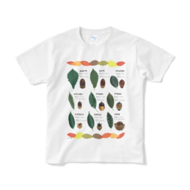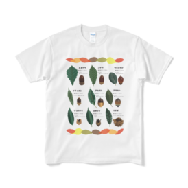 Tシャツ(短納期) - XL - ホワイトどんぐり9種類が描いてあります。葉っぱや特徴が書いてあるので、図鑑として使えます。 素材:綿 100%(リングスパンコットン) 生地の厚さ:180 g/㎡ (5.3 oz per sq yd) この商品はpixivFACTORYで作られた商品です。サンプル画像は完成イメージのため、実物と異なる場合があります。