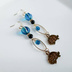 再販☆はりねずみが揺れるオーバルフープとチェコビーズのロングピアス/イヤリング(青)