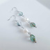 癒し系なお色が素敵なチェコビーズと真っ白な淡水パールをシンプルに合わせたお洒落なピアスとなっております☆ メインのお色は自然に湧き出る泉をイメージしたブルーが混ざったようなグリーン色、淡水パールを合わせる事によってプチエレガントな雰囲気に仕上げました☆ シンプルなデザインとなっておりますので、様々な場面でご着用をお楽しみ頂けると思います☺ ☆チェコビーズ アクアマリンピカソ テーブルカットオーバル 8x6mm ☆ファイアポリッシュチェコビーズ 色名不明 6mm ☆淡水パール(天然石) 縞入りポテト 6~7cm程 ☆メタルビーズ シルバー ☆9ピン ☆丸カン ☆三角カン ☆ピアス用金具(フック式☆シルバー) 長さは約5cmとなっております。(1cm程のピアス金具を含む)