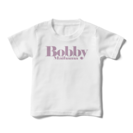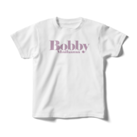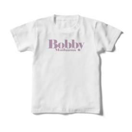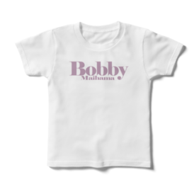 BobbyのキッズTシャツ(ホワイト / ロゴ:ライトパープル)