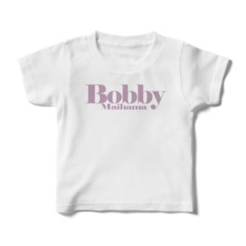 BobbyのキッズTシャツ(ホワイト / ロゴ:ライトパープル) - 100cm