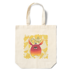この商品はpixivFACTORYで作られた商品です。サンプル画像は完成イメージのため、実物と異なる場合があります。 別名義でやっている配信のマスコット的存在、うさぎとりんごのばけもんことあめぎのエコバッグです。