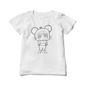 レディース白Tシャツ ねずみさぶれ(モノクロ)