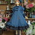 ●ワンピーススカート 表生地:綿ブロード、綿ポリ、綿スケアーなどを使用しています。 同じカラーでも、製作時に使用する生地によって、少し色味が違う場合があります。 裏生地:白、ピンクなどの裏地用タフタ、綿ローンなどを使用しています。 その他、装飾用にサテンリボン、ラッセルレースなど使用。 プリンセスラインのワンピーススカートです。 後ろコンシールファスナー開き。 身頃のみ裏地付きです。 袖、裾フリル部分には裏地はありません。 リボンは縫い付けです。 ※モデル着用サンプル品のサファイアブルーの衿が丸襟になっていますが、実際の製品はルビーレッドと同じ角襟です。 ●ペチコート 白の綿ブロードとラッセルレース使用。 ウエストはゴム。 ●帽子 リボンは縫い付けです。 ●アクセサリー メタルパーツのカラー、チャームの種類はランダムです。 ご指定はできません。 モデル着用分の物とは別のカラー、チャームになる場合があります。