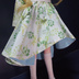 ●浴衣タイプのトップスに、フィッシュテールの同布スカートを合わせた浴衣風ドレスです。 ●作り帯のリボンのサイズが2サイズございます。お好きな方をお選びください。 ●スカートのウエストは総ゴムなので、幅広い体型の子に着せてあげられます。 ●上着は合わせの部分をマジックテープで固定出来るようになっておりますので、上着→裾をインするようにスカートを履かせる→帯を着ける、の順で着付けてください。 お好み次第で上着が外でも構いませんが、中に入れて頂いた方がフィッシュテールが綺麗に出るかと思います。 ●マジックテープは熱に弱いので、アイロンがけ等をする際溶けてしまう場合がございます。マジックテープ部分はアイロンをかけないようお願い致します。 ●お手入れの際はおしゃれ着用洗剤等を溶かしたぬるま湯で優しく洗ってください。 ●40cm程度(1/4サイズ)のドール用サイズとなっております。 【セット内容】 ・上着 ・スカート(総ゴム式) ・帯(マジックテープ式、作り帯) 【モデル】 myoudoll Delia(40cm)