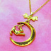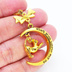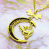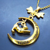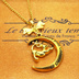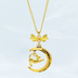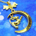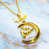 ゴールドカラー のび猫と三日月を組み合わせたペンダント・ネックレス リボン 長さ・SV925変更可 アジャスター追加可