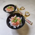 小さなネギトロ丼のキーホルダーです。 おひとつの価格です。 サブパーツはチャームになっております。 取り外し可能です。 丼の直径…約49ミリ 【お取り扱いについて】 ※ お子様やペットの誤飲・誤食にご注意ください。 ※ ハンドメイドのため、ほこりや指紋が残る場合がございます。 ※ ニスなどでコーティングしておりますが、完全防水ではございませんので、水濡れには十分お気をつけください。 ※ 既製品のような強度はございませんので、落としたり強い衝撃を与えないようご注意ください。 ※ 開封時、樹脂のにおいを強く感じることがございますが、風通しのよいところに置いていただきますと、だんだん消えていきますのでご安心ください。