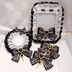 ストライプ柄硬質ケース・ロゼット・ヘアクリップ【ブラック】