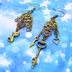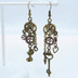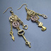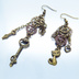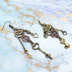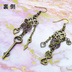 アンティークゴールド スチームパンク風 猫と歯車のアシンメトリーピアス チェーン ハート カギ 時計の針 コンパクト