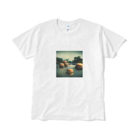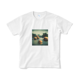 Tシャツ(短納期) - XL - ホワイト無数のハンバーガーが川を流れています