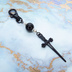 ソリッドなソード(剣)とオニキスのブラックキーホルダー バッグチャーム