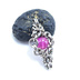 作品シリーズ:third eyeR 用途:ペンダント等 素材: sus316L(サージカルステンレス) 天然石:ピンクサファイア(コランダム) 産地:ミャンマー 天然石色:透明感のあるピンク色 天然石サイズ ±7.5㎜ 用途:ペンダントトップ・お守り・キーホルダー等 ●作品の制作に関して 天然石の大きさに合わせ、円形のサージカルステンレス(マルカン)を1つ1つ何十個も手作業で複雑に編み上げていくチェインメイルと呼ばれる技法を使い制作されたアクセサリーです。 ●天然石等に関して 透明感と美しい発色を兼ね備えた、宝石質のピンクサファイアを使用したペンダントトップ。 ルビーよりもやわらかく優しい色合いのピンクカラーが魅力で、上品に装いへ彩りを添えてくれます。主張しすぎない絶妙な発色で、普段使いからちょっとしたお出かけまで幅広く活躍します。 ピンクサファイアはダイヤモンドに次ぐ硬度を持ち、さらに靭性(粘り強さ)にも優れているため、欠けにくく丈夫な宝石です。日常使いにも安心してお使いいただけます。 また、石を囲む金属部分にはサージカルステンレスを使用。 錆びにくく耐久性が高いため、長くご愛用いただける仕様となっています。 ルビーとサファイアは同じ「コランダム」という鉱物で、赤色がルビー、それ以外の色がサファイアと呼ばれます。ピンクサファイアはその中でもやさしく可憐な色合いを持ち、クロムの含有量によってルビーとの境界が変わる、奥深い魅力を持つ宝石です。 ストーンワード ・隠れた才能や知性を引き出す ・洞察力やインスピレーションを高め、良い解決策やアイディアをもたらし、最良の未来へ導く ・恋の成就や新しい出会い等、恋愛のサポートをする。また、絆を固める等の意味合いもあります。 ・魔除けの石 ・決意を固め精神的な強さを強め目標達成の道のりをサポート ・絆など精神的なつながりを強める ・良い距離感で人と付き合えるようになるよう人間関係を円滑にするためのサポートをする ・自信をもたらし、隠れた魅力を引き出す ※天然石説明にて使用しております説明等は古来よりの言い伝え等に基づき記載させていただいております。 効果等と保証するものではございません。 ※天然石は自然から出来たもので、人工物ではないため、生成の過程でクラック(欠け)やインクルージョン(内包物)が含まれたものも混入する可能性がございます。