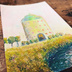 湖畔のホテル ようこそ人間。おはよう人間。 昔からあるホテルには、ロビーやレストランからの美しい眺めを目当てに、北から南からたくさんの人が訪れる。特に美しいと言われるのが夕方の眺め。空の水色、桃色、淡い紫、橙色を反射する湖は、それはそれは美しい。マジックアワーと呼ばれる時間、ホテルの敷地は静かになって、時々ため息が聞こえてくるだけ。暮れていく空と、少しずつ波の影が濃くなる湖を皆が眺めている。太陽が対岸の森に沈んで見えなくなったら、誰かが「お腹がすいたね」と言って皆次々に空腹を思い出す。今夜は料理長お得意のカボチャのシチュー。紫キャベツのマリネとスモークサーモンも人気。 何だか先程の夕焼けを思い出す色。美味しさが増す心地。 料理を味わうひととき、ホテルは穏やかな顔で建っている。エントランスの灯りは橙色、暖炉のような暖かさ。 おかえり人間。おつかれ人間。 湖のような落ち着きで、ホテルは客を出迎える。 - - - 使用画材:オイルパステル サイズ:ポストカードサイズ(10×15cm) 仕上げ剤を吹き掛けてありますが、色移りや色落ちの恐れがありますので引っ掻く、こするなどの力を加えないようお気を付けください。 梱包費削減、環境への配慮から、梱包材に古紙や段ボールを用います。ご理解ご協力をお願いします。(折れ曲がり防止に段ボールをあてるなど)