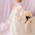 【商品名】 礼夢-Lem- 【対応サイズ】(バリエーションにて) SDM、MDD SD共用、SD13少女、SDGr少女、DD SD13B SDGrB SD16少女 SD17B DDdy 海外70cm 【着用モデル】 SD13 Boy Revival 着用モデルによって裾の引き摺り方が変わります。 【セット内容】 レース着物(綿ローン仕立て) 帯用リボン ※ドールや撮影小物は含まれません※ ※お写真で使用しているパーツやレースは資材の都合上変更となる場合がございます、大きくイメージが変わることは無いように作成しますが、ご理解の方お願い致します※ 【使用生地】 画像のものは試作品のためガーゼ生地を使用しておりますが、商品は綿ローンでのお仕立てとなります。綿ローンは柔らかくて軽く、少し透け感のある生地ですので大きくイメージが異なることはありません。 パーツに使用している金属パーツは全てゴールドで制作致します。襟のレースと裾のレースは繋がるデザインに変更となります。 【飾りや着方の説明】 着物の様な形をしておりますので、羽織らせて前を合わせてリボンを巻いて留めて頂く形となります。勿論中にほかのお洋服を着て頂いてガウンや羽織ものとしても使用できます。 納期は1~3ヶ月程を予定しております。 遅れる場合はTwitterにてアナウンス致します。 繊細な生地やパーツを使用しておりますのでお取扱にはご注意ください。濃い色の生地を使用している場合色移りの可能性がありますので各自対策をお願いします。 発送は【宅急便コンパクト】での発送となります。 喫煙者がいますが布地等は別部屋にて保管しておりますので臭い等はほとんどありません。ペットは飼っておりません。 気になる方はご注意ください。 あくまで素人のハンドメイド作品となっておりますので、縫製の甘い点、 技術不足な点などあるかと思いますがその点はご理解をお願いします。 基本的にノーキャンセル、ノークレーム、ノーリターンでお願いします。イメージ違いでの返品、交換はお断りします。 転売目的での購入は禁止致します