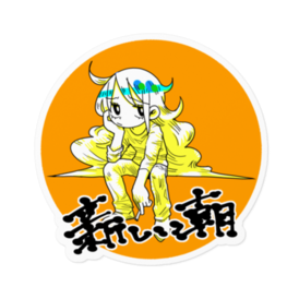 ステッカー - 100 x 100 (mm)創業以来愛され続けて120年!ご存知ロングセラー商品 新しい朝ステッカーです。 この商品はpixivFACTORYで作られた商品です。サンプル画像は完成イメージのため、実物と異なる場合があります。