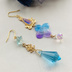 グラデーション紫陽花とフローライト ピアス イヤリング 5000円以上お買い上げごとにプレゼントをお付け致します(1万円以上の場合のプレゼント内容はプロフ記載しています) 片耳は スターダイスカットのフローライトから 金色の装飾金具 先端にはドイツ製ヴィンテージアクリルの水色パーツをつけています もう片方は メインパーツとして 水色と紫のグラデーション紫陽花から オーロラカットドロップを垂らしました 樹脂フックピアス チタンフックピアス チタンピンピアス 変更 必ずオプションよりお選びください パーティ 綺麗 大人 可愛い 華やか イベント 大人綺麗 かわいい しずく シンプル 差し色 アンティーク ガラス ドロップ プレゼント 月 星 天体観測 惑星 金星 パンク ゴシック スチームパンク ホラー ハロウィン スチームパンク ゴシック 吸血鬼 ヴァンパイア 幻想的 悪魔的 パンク ゴス ローズ トランプ ハートの女王 魔法 魔術 呪術 妖術 ドラゴン ドラコニア 龍 コスプレ 海 貝 魔女 湖 森