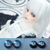 ジェムタイプ(銀箔と透明釉薬使用) ふちどりに銀より線使用 直径・虹彩サイズは商品タイトル参照(直径/虹彩) ※0.5mm単位 計測部分によって0.5mm前後誤差あり カラー:ブルー系グラデーション、瞳孔黒(猫目) 通常白目である部分を黒で製作しています 特記事項:瞳孔の形状左右差 素材:銅板、ガラス(デザインにより銀箔や純銀線、銅線など使用) 共通のご説明は【商品について・諸注意事項】にまとめています。ご購入前にお読み下さい。 https://l-du-e.booth.pm/items/2993748 七宝グラスアイについて ・金属の土台にガラス質の釉薬を焼き付けたアイです。約800度の高温で焼成する焼き物で、経年劣化の心配はありませんが、温度変化や衝撃で割れる恐れがあります。 ・金箔・銀箔を表面に焼き付けたアイは、鋭利な物で強くこすると剥がれる場合があります。 ・焼き物のため、フチの部分は土台の金属が少し露出します。お取扱いにはご注意ください。 ・誤飲や怪我のおそれがありますので、ペットやお子様の手の届かない所に保管してください。 ・ハンドメイドにつき左右差や歪みがあります。 ・ドールに装着時隠れる白目部分の凹凸や気泡、色ムラ等は不良ではありません。