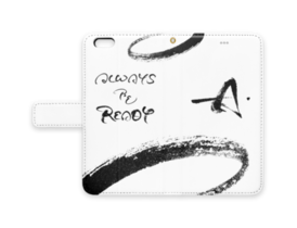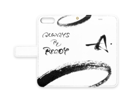 筆文字 "ALWAYS BE READY" & "A." 手帳型iPhoneケース