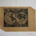 17世紀に描かれた世界地図を素材にした紙製ブックカバーです。 ブックカバーのサイズはA3判。天地左右を折って四六判やA5判、B5判の書籍、雑誌のカバーとして使うことができます。 ギフト用の包装紙、ラッピングペーパーとしてもお使いいただけます。 絵柄の違う5枚で1セット。 17世紀の世界地図をもとにモノクロ印刷しました。周囲に余白がありますが、A5判用に天地左右を折ったときにちょうど余白が隠れるサイズとなっています。 使用した地図 1.1628年にサー・フランシス・ドレークによって作られた折りたたみ可能な地図。 2.1662年にオランダの地図製作者ジョーン・ブラウによって作られた地図。 3.1672年にオランダの地図製作者・彫刻家ジェラルド・バルクによって作られた地図。極を中心に北半球と南半球が描かれた珍しいもの。 4.ジョドックス・ホンディアスによって描かれた地図。出版は1625年。 5.1627年にイギリスの地図制作者・歴史家ジョン・スピードによって作られた地図。 使用した用紙はクラフト紙(ブラウン)と再生紙(コピー紙よりやや厚く、黄味がかった白)の2タイプ。お好みのほうをお選びください。ブックカバーとして使うだけでなく、小物の包装紙、写真撮影の背景紙などアイデア次第でいろいろ活用できます。折らずに発送します。 【素材】 クラフト紙 厚さ0.11mm 再生紙 厚さ0.10mm 【サイズ】 A3判(幅420×高さ297mm)×5枚 【購入の際の注意点】 市販の用紙にレーザープリンタでモノクロ印刷したものです。 写真と実物では多少色味が異なる場合があります。 一部の画像は解像度が足りずややぼけた感じになっています。あらかじめご了承のうえ購入お願いします。
