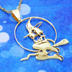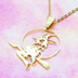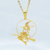 ステンレス製ゴールドカラーのホウキにまたがる魔女のペンダントネックレス ウィッチ ムーン アジャスター追加可