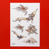 「百鬼夜行絵巻」真珠庵本に登場する妖怪の絵を転写タトゥーシールにしました。 画面上、白地に見える部分は実際には透明になります。 貼り付けたときには、写真とは左右反転します。 「百鬼夜行絵巻」は妖怪たちが列をなして歩いているさまを描いた絵巻。多数の絵巻が存在するが中でも京都大徳寺山内の塔頭・真珠庵(しんじゅあん)に所蔵される「百鬼夜行絵巻」(伝土佐光信 室町時代)が有名。この絵巻に登場する妖怪のうち以下の5体の絵をトレースして収録しました。なお、絵巻には妖怪の名前は付されていないので、便宜的につけたものです。 鳥兜、琴妖怪をひく琵琶の妖怪、扇の妖怪、鰐口の妖怪 全6点(サイズ大 4点、サイズ小 2点) 絵柄のサイズ サイズ大 長辺45〜86mm、サイズ小 長辺40〜56mm。 水で湿らせて貼り付けるだけなので簡単。はがすこともすぐできます。 タトゥーシールとして肌につける以外にも、プラスチックや金属など表面がなめらかなものに貼り付けられます。 【素材】 市販の転写シール 透明タイプ 【サイズ】 幅100×高さ148mm(はがきサイズ) 【購入の際の注意点】 表面の粗いものにはきれいに転写できません。 水を使って転写させるため、紙など水に弱いものには転写できません。 肌に転写した場合は一日を目安にはがしてください。 シートは湿気を吸いやすい性質があるので、なるべく早めにお使いください。