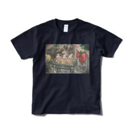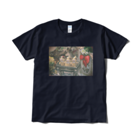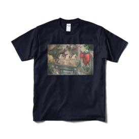 Tシャツ(短納期) - XL - ネイビーこの商品はpixivFACTORYで作られた商品です。サンプル画像は完成イメージのため、実物と異なる場合があります。 プリンアラモードの猫ちゃんデザインのTシャツです。ネイビーカラーにアンティークなデザインがお洒落で、着回しにも便利です。