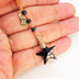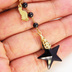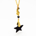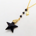14KGF 猫モチーフのネックレス 大粒星型ジェットと3連オニキス 猫アクセサリー ブラックオニキス 黒琥珀 漆黒の宝石