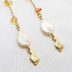 14KGF シンプルで可愛い猫シルエットモチーフのロングチェーンピアス カーネリアン 淡水パール ティアドロップ