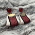 ボクラノキセキのベロニカをイメージしたピアス/イヤリングです。 大きくゆらゆら揺れるモチーフのパーツは作中の衣装をワインレッドと黒のリボンで表しています。 アイボリーのリボンは騎士たちとお揃いになっています。 ワインレッドのリボンは手染めをし、他のキャラクターと柄がお揃いになっています。 単体でももちろん、他のキャラクターと組み合わせての使用もお楽しみ頂けます。 耳元はキャラクター達のピアスをイメージした深緋のパーツで彩ります。 金属パーツはピアス/イヤリング部分はアレルギー対応品ですが、モチーフ部分は非対応です。 イヤリングは写真4枚目のようなネジバネ式です。 (耳につけた際パーツは正面を向くようになっています) ベロニカイメージ①とピアスorイヤリングを合わせてご購入をお願い致します。 イヤリング:横3.5cm×縦5.5cm ピアス:横3.5cm×縦5.0cm