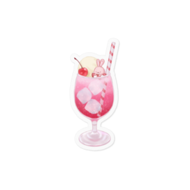うさぎさんがぷかぷかクリームソーダに浮かんでるイラストのステッカーです。
