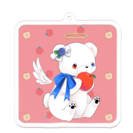 白いʕ•ᴥ•ʔクマクマ アクリルキーホルダー スクエア型