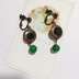 欧米から輸入したレディース古着のボタンをリメイクしたアクセサリーです。 直径約15mm モチーフ部分長さ30mm イヤリングパーツは黒ニッケル、ネジバネ式です。 金属アレルギー・レジンアレルギーなどのある方はコーティング液を塗布するなど、使用の際はご注意ください。 天然石ビーズを使用しておりますため、微妙な歪みなどある場合がございます。ご理解いただければ幸いです。 ✱✱✱ 丁寧に製作してはおりますが、家庭用設備・材料のみを使用した、素人のハンドメイド品であることをご理解いただける方のみご注文ください。 一部ほつれ止め・布用ボンド・濡れに弱い素材(サテンなど)を使用している場合がありますので、基本的に洗濯はできません。 また製作後間もない布作品は、水に濡れるとチャコペンの印が浮き出てしまう場合がございます。乾燥すると自然に消えるものですので、念の為色移りなどがないようご注意して保管ください。 また、作品に直接アルコールをかけての消毒などもお控えください。 製作・材料の保管は、猫のいる家で行っております。 毛の付着などないよう注意してはおりますが、ひどいアレルギーがあるなどご不安な方はご購入をお控えください。 ノークレーム・ノーリターンでお願いいたします。 製作者責任の初期不良(購入品と違うものが送られてきた、梱包は綺麗なのに中身が壊れていたなど)の場合を除き、返品交換は受け付けておりません。