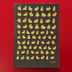 うさぎのシルエットイラストをOHPフィルムにモノクロで印刷し、金の箔を押しました。 写真で見ると場所により色が違ってみえますが、実際には同じ色の箔が均一に乗っています。見る角度や光のあたり具合によって黒っぽくみえたりします。 写真で黒くみえるところは実際は透明です。 必要な部分をはさみで切り取り、レジン封入用にお使いください。 表面は金、裏面は黒です(写真2)。 うさぎのシルエットイラスト14種をサイズにバリエーションをつけて収録しました。 全76点(サイズ大 28点、サイズ小 48点) サイズ サイズ大 長辺9〜12mm、サイズ小 長辺7〜10mm 【素材】 OHPフィルム 厚さ0.10mm 箔押し スタンピングリーフ 金 【サイズ】 幅105×高さ148mm(A6判、ほぼはがきサイズ) 【購入の際の注意点】 写真と実物では多少色味が異なる場合があります。 市販のレーザープリンタにOHPフィルムを使って印刷し、箔押ししているので、精密さに欠けるところがあります。 制作工程上、どうしても余分に箔押しされているところ、箔押しが抜けているところが発生してしまいます。あらかじめご了承のうえ購入をお願いします。 このフィルムを使用して制作したオリジナル作品の販売はOKです。 フィルム自体の転売やコピーはおやめください。