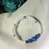 ご覧いただきありがとうございます。 ブルーストライプアゲート(青縞めのう)(10mm) ブルーメノウ(8mm) ガラスビーズ (6mm) 青縞瑪瑙の模様が綺麗に出ている石です。 腕周りのガラスビーズは6mmと少し小さめなので色合いと相まってすっきりとした印象です。ガラスビーズはボタンカットなのでキラキラと光を反射しますが、その分ゴツゴツとした肌触りです。 長さは17センチ程度(若干誤差あり)で、オペロンゴム使用なので伸縮性があります。ゴムなのですぐ腕に付けておでかけできます。 色うつりする可能性がございますので汗や水濡れなどに気を付けてください。 繊細なものですので優しく取り扱ってください。衝撃で壊れたり無理に伸ばしすぎると千切れる可能性があります。 お使いのブラウザによって色の見え方が若干異なる場合があります。 個人で作成したものです。粗が目立つかもしれませんが気になる方はご購入をお控えください。 ハンドメイドということをご理解いただいた上でお願い致します。 撮影用小物は付属致しません。 プチプチに包んで発送致します。 クリックポストでのお届けになります。 宜しくお願いいたします。