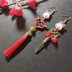 ご覧頂きありがとうございます(^^) 可愛らしいお狐様のパーツをメインに和を詰め込んでみました。お神楽の賑やかさをイメージしております。和好きさんいかがでしょう(^^) 飾り部分 タッセルの方…11cm 刀の方…8cm 金具の変更は ★金属イヤリング(ネジバネ式) ★樹脂イヤリング ★樹脂フック ★ステンレスフック ★ポストピアス に無料変更可能です。ご希望の方はメッセージよろしくお願いしますm(_ _)m ※ハンドメイド作品になりますので、ひとつひとつ差異があります。こちら結びを乾くと透明になる接着剤で固めております。市販のもののような完璧さや耐久性をお求めの方はご購入をお控えください。 和風 和ゴス 和ロリ 和 着物 袴 浴衣 水引 ゴスロリ ロリ 狐面 お狐様
