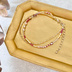 ゴールドのビーズを中心に、木苺のようなピンクレッドやパールをアクセントに2連のチェーンのブレスレットに仕上げました。