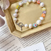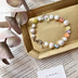 ミルフィオリガラスやプラスチックビーズを合わせて、カラフルに仕上げました。