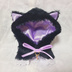 主に15cmぬいなどのお顔周り30cm前後のぬいぐるみ向けきぐるみケープです。 表地は黒色のファー生地を使用しております。 フロントはスナップボタン式で簡単に着脱ができる仕様になっています。 リボンの下にはそれぞれチャームがついています。 色柄は、ラベンダー と モノトーン の2種類からお選びいただけます。 ラベンダーの方は、裏地に薄紫色のサテン生地を使用し、薄紫色のリボンの下にはキャンディのチャームがついています。 モノトーンの方は、裏地に白黒の千鳥格子柄の生地を使用し、白色のリボンの下にはコウモリのチャームがついています。 ⚠️ ・素人のハンドメイド作品となります。 左右非対称であったり、手縫いの箇所や接着剤を使用している箇所がございます。気になる方はご遠慮ください。 ・既製品のような強度はありません。 破損してしまう可能性があるため、強く引っ張るなどの無理な扱いやお洗濯などはお控えください。 ・手持ちの15cmぬいを基準に採寸をし制作しておりますが、ぬいぐるみの種類や個体差によっては大きすぎたり窮屈な場合がございます。ご了承ください。 透明フィルムに入れ梱包いたします。 自家通販のため、発送までお時間をいただく場合があります。