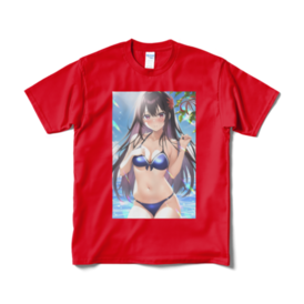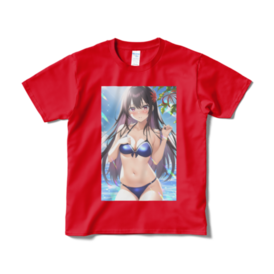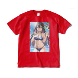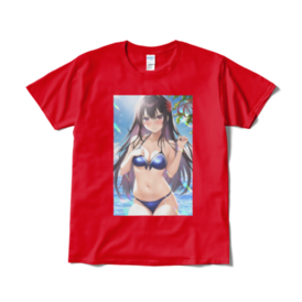 Tシャツ(短納期) - XL - レッド黒髪ロングが好きなんです! それと恥じらう感じいいですよね(*^^*) 見せたいけど見られると恥ずかしいという ジレンマが出ていれば嬉しいです❣