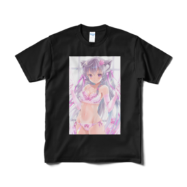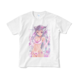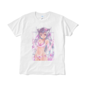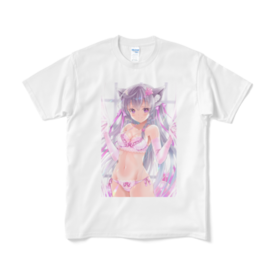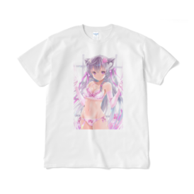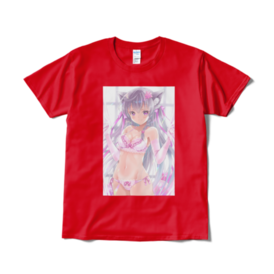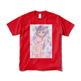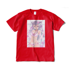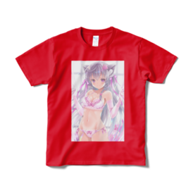 Tシャツ(短納期) - XL - レッドお気に入り❣ 猫耳さんが可愛く描けたと思ってます 銀髪ロングでピンクのランジェリーで朝イチの 光の中でふわふわイラストです❤