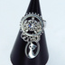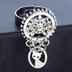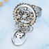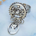 アンティークシルバー スチームパンク風猫と歯車のリング スワロフスキー チェーン フリーサイズ