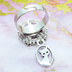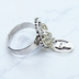 アンティークシルバーの猫と歯車を組合せたスチームパンク風リングです 大きめ歯車を中心として、猫モチーフを吊り下げています 吊り下げた猫モチーフはステンレス製です 歯車の中心にはスワロフスキー・クリスタルをはめこんであり、キラキラと輝きます スワロフスキーの両側には小さな花モチーフをプラスしています リングのサイズはデフォルトでは11号(内径約16.4mm)ですが大きさは自由に調整できるようになっていますので、お好みの指にご利用いただけます リングのベースと歯車は接着にてつなげていますので無理に力を歯車モチーフにかけると破損の恐れがございます。ご注意ください ※リングベースは真鍮にメッキ加工、歯車モチーフは亜鉛合金にメッキ加工、猫モチーフはステンレス製です。金属アレルギーの方はご注意ください 「スワロフスキー・クリスタル」 スワロフスキーは100年以上もの歴史のあるオーストリアのクリスタルガラス製造会社が生み出すクリスタルガラスです。その独自の製造法とカッティング技術により生み出されるクリスタルガラスは透明度と光の屈折率が高くてとても美しい輝きを放つとされています。当方では一般販売されている素材を利用させていただいています 「材質」 リング:真鍮:メッキ加工 歯車:亜鉛合金 猫:ステンレス スワロフスキー・クリスタル 「サイズ」 リング幅:約約4.5~5mm リング厚み:約1.0mm 猫:約13mm×8mm 歯車:直径約16mm リングサイズ:フリーサイズ (デフォルトサイズはおおよそ11号(約16.4mm)ですが、調整が可能です) 重量:約4.0g ※ご使用のモニターの色の違いにより、実際の商品と色味が若干異なる場合がございます。予めご了承ください NN-RI09