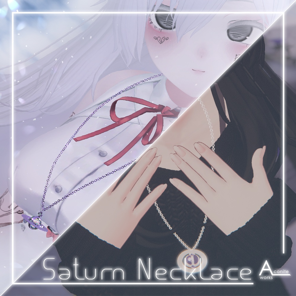 There's nothing to say here except, I hope you enjoy it. = File Inside = - [Aconite0101] Saturn Necklace.unitypackage - FBX Model - Matcap - material - Readme ***Note require Liltoon shader https://booth.pm/en/items/3087170 = Model info = - Saturn Necklace Big Vertices : 12,854 Edges : 37,710 Face : 25,063 Triangles : 25,158 - Saturn Necklace Small Vertices : 9,005 Edges : 26,455 Face : 17,561 Triangles : 17,652 = Term of use = https://docs.google.com/document/d/e/2PACX-1vTjjN8dN6HRtJoEa5rE07FFJ5mCV7r4bTsHJq4owbVbh55QiEF8aAOUlojgdbVPA_8jhlDHqi0Bjly0/pub = Contact = Discord Server : https://discord.gg/rddHHY9 Twitter : @Aconite0101 = Special thank = - Cocoa (For vrc picture): https://cocoaalice.booth.pm/ - ふみ (For vrc picture)